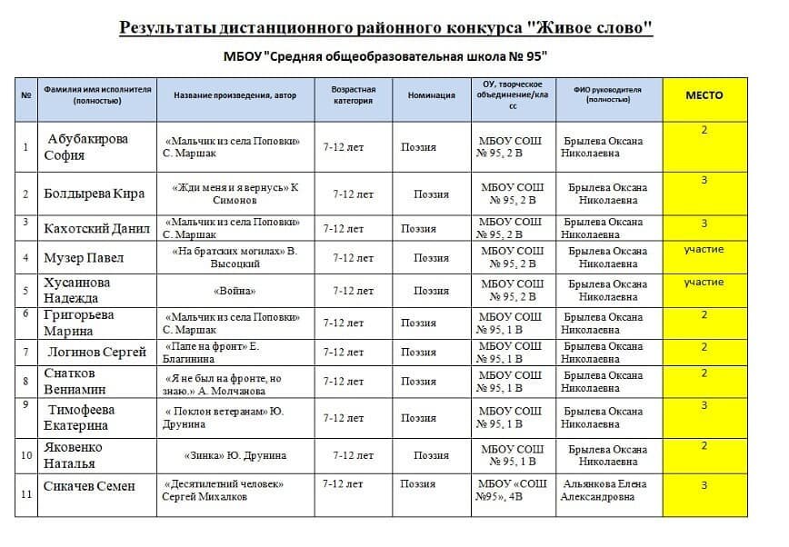 Результаты районного конкурса "Живое слово"